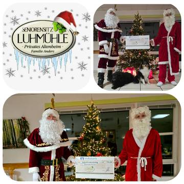 Heilig Abend in der Luhmühle 2025...Der Weihnachtsmann kam zu Besuch![]() DANKE sagen & Freude bereiten! Nachdem der Weihnachtsmann mit seinem Gehilfen wie jedes Jahr am späten Nachmittag des heiligen Abends durch unsere Einrichtung ging und alle Bewohnerinnen und Bewohner persönlich mit kleinen Präsenten erfreute, durfte er auch in diesem Jahr wieder außerhalb des Seniorensitz Luhmühle für Freude sorgen: 750,-€ für die Feuerwehr Greene sowie 750,-€ für den Tierschutz Bad Gandersheim e.V.. Heilig Abend in der Luhmühle 2025Bilder und Bericht finden SIE hier: Sommerfest 2025Bilder und Bericht finden Sie hier: Heilig Abend in der Luhmühle 2024.....Eine wunderschöne Weihnachtsfeier mit AndachtBilder und Bericht finden Sie hier: Heilig Abend in der Luhmühle 2024...Der Weihnachtsmann kam zu BesuchBilder und Bericht finden Sie hier: Sommerfest 15. Juni 2024Bilder und Bericht finden SIE hier: Feier in den Mai 2024...Bilder und Bericht finden Sie hier: Karneval 2024Bilder und Bericht finden Sie hier: Weihnachten 2023Bilder und Bericht finden Sie hier: Sommerfest 2023Bilder und Bericht finden Sie hier: Weihnachten 2022Bilder und Bericht finden Sie hier: Sommerfest am 09. Juli 2022Bilder und Bericht finden Sie hier: Ostern 2022Bilder und Bericht finden Sie hier: Weihnachten 2021Bilder und Bericht finden Sie hier: Sommerfest am 10. Juli 2021Bilder und Bericht finden Sie hier: Ostern 2021Bilder und Bericht finden Sie hier: Weihnachten 2020Bilder und Bericht sehen Sie hier: Ostern 2020Bilder und Bericht finden Sie hier: Karnevalsfeier am 24.02.2020Bilder und Bericht finden Sie hier: Sternsinger am 06. Januar 2020Bilder und Bericht finden Sie hier: Silvester 2019 / 2020Bilder und Bericht finden Sie hier: Heilig Abend 2019Bilder und Bericht finden Sie hier: Die Adventszeit in der Luhmühle - Weihnachtsfeier am 14. Dezember 2019Bilder und Bericht finden Sie hier: Die Adventszeit in der Luhmühle - Weihnachtsfeier am 07. Dezember 2019Bilder und Bericht finden Sie hier: Nikolausfeier am 06. Dezember 2019Bilder und Bericht finden Sie hier: Weinfest am 20.09.2019Bilder und Bericht finden Sie hier: Sommerfest am 29. Juni 2019Bilder und Bericht finden Sie hier: Ostern 2019Bericht und Bilder finden Sie hier: Karnevalsfeier am 04.03.2019Bilder und Bericht finden Sie hier: Sternsinger am 04. Januar 2019Bericht hierzu finden Sie hier: Silvesterfeier 2018 / 2019Bilder und Bericht finden Sie hier: Heilig Abend 2018 in der LuhmühleBilder und Bericht finden Sie hier: Die Adventszeit in der Luhmühle - Weihnachtsfeier am 08. Dezember 2018Bilder und Bericht finden Sie hier: Nikolausfeier am 06. Dezember 2018Bilder und Bericht finden Sie hier: Musiknachmittag mit dem "Spatzenchor" am 05. Dezember 2018Bilder und Bericht finden Sie hier: Musiknachmittag mit "Admiral von Hipper" am 30. November 2018Bilder und Bericht finden Sie hier: Geburtstags-Sektempfang am 18. November 2018Bericht und Bilder finden Sie hier: Herbstbäckerei am 15. November 2018Bericht und Bilder finden Sie hier: Laternenumzug am 14. November 2018Bericht und Bilder finden Sie hier: Oktoberfest am 19. Oktober 2018Bericht und Bilder finden Sie hier: Heidefest am 20. September 2018Bericht und Bilder finden Sie hier: Frisch aus dem Garten - ins Glas!Bei Temperaturen von über 36°C ist der Aufenthalt im Freien alles andere als angenehm. Also haben wir an diesem Nachmittag die therapieeigene Küche genutzt und frische Gurken und Zucchini geschnibbelt und eingelegt. Bei angenehmen Temperaturen im Hause und erfrischenden Kaltgetränk dazu wurde viel über die damalige Zeit geklönt - als noch regelmäßig in nahezu jedem ländlichen Haushalt das selber angepflanzte Gemüse eingelegt und verarbeitet wurde. Sommerfest der Luhmühle am 16. Juni 2018Bilder und Bericht finden Sie hier: Besuch des Singkreis Odagsen am 25. Mai 2018Bilder und Bericht finden Sie hier: Ostern 2018Bilder und Bericht finden Sie hier: Karnevalsfeier am 12. Februar 2018Bilder und Bericht finden Sie hier: Sternsinger am 04. Januar 2018Bericht finden Sie hier: Silvesterfeier 2017 / 2018Bericht finden Sie hier: Heilig Abend in der Luhmühle 2017Bilder und Bericht finden Sie hier: Die Adventszeit in der Luhmühle - Weihnachtsfeier am 09. Dezember 2017Bilder und Bericht finden Sie hier: Nikolausfeier am 06. Dezember 2017Bilder und Bericht finden Sie hier: Der erste Schnee Ende 2017....Die Adventszeit in der Luhmühle - Weihnachtsfeier am 02. Dezember 2017Bilder und Bericht finden Sie hier: Die Weihnachtsbäckerei mit "Klein" & "Groß" am 29. November 2017"Klein" und "Groß" trafen sich am Mittwoch den 29. November zusammen im Therapiebereich der Luhmühle und gemeinsam gab es jede Menge "Leckerei" in der Weihnachtsbäckerei". Der Kindergarten Greene war mit einer Abordnung von über zehn Kindern den Vormittag in die Luhmühle gekommen um den Küchenbereich der Therapie mit einigen Bewohnerinnen und Bewohnern zusammen in eine Backstube zu verwandeln. Zusammen wurde geknetet, ausgestochen und dekoriert und natürlich auch viel erzählt und sich amüsiert. Es war ein bunter und lehrreicher Vormittag, der den verschieden Generationen sehr viel Spaß und Freude bereitet hat und war auch für viele Kinder etwas ganz Besonderes, da einige weder das gemeinsame Backen daheim - noch Aktivitäten mit älteren Menschen kennen. Beginn der Weihnachtsbäckerei 2017Das Wetter wird trüber - die Temperaturen sinken und Weihnachten wirft seine ersten Schatten voraus....seit dem 21. November erfüllt nun wieder der Duft von frisch gebackenen Keksen die Luft in unserer Einrichtung und ein jeder kann es riechen, sie naht, die Weihnachtszeit. Fleißig haben sich am 21.11.2017 bereits einige Bewohnerinnen daran gemacht und die Küche im Therapiebereich in eine Backstube verwandelt um die ersten vorweihnachtlichen Kekse des Jahres zu backen. Schlachteessen am 17. November 2017Bilder und Bericht finden Sie hier: Gesundheitsmesse am 04. November 2017Die 9. Paracelsus Gesundheitsmesse in Bad Gandersheim a